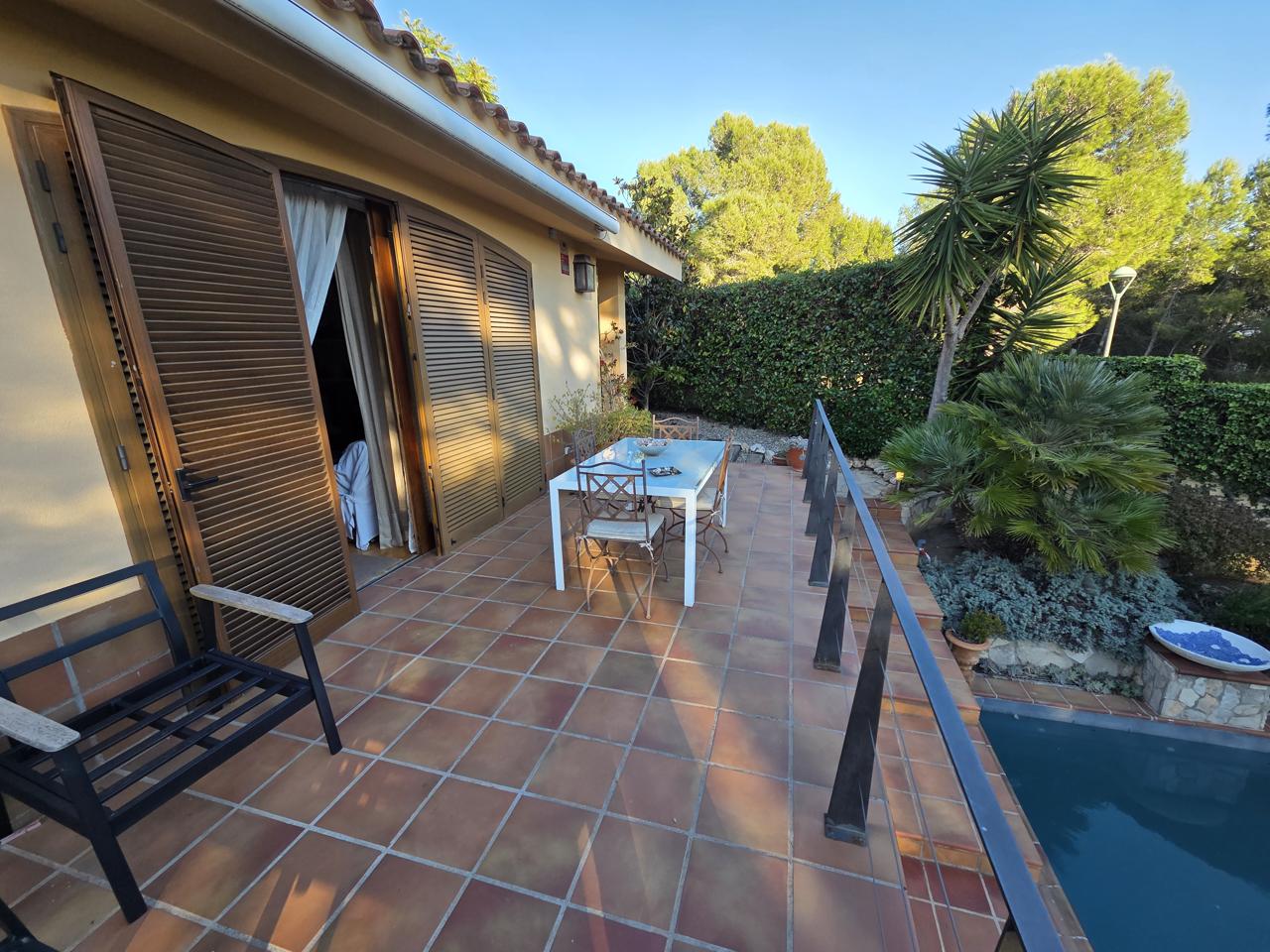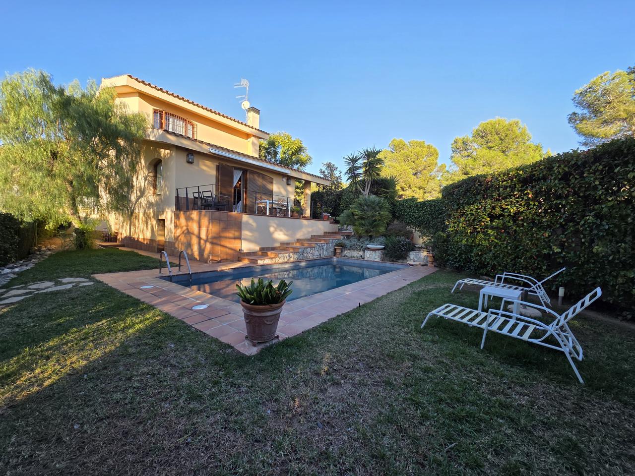 Casa en perfecte estat, molt lluminosa, a la part més alta de Boscos de Tarragona. A la planta baixa trobem el rebedor, un ampli saló menjador, cuina, bany complet i una habitació doble. A la planta primera hi trobem una àmplia habitació suite, amb vestidor i bany complet. Jardí amb piscina.