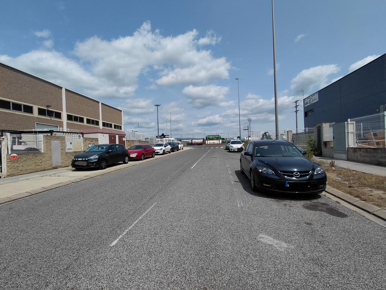 A la part frontal de la parcel·la hi ha un espai de pàrquing per als usuaris i clients de les naus.
