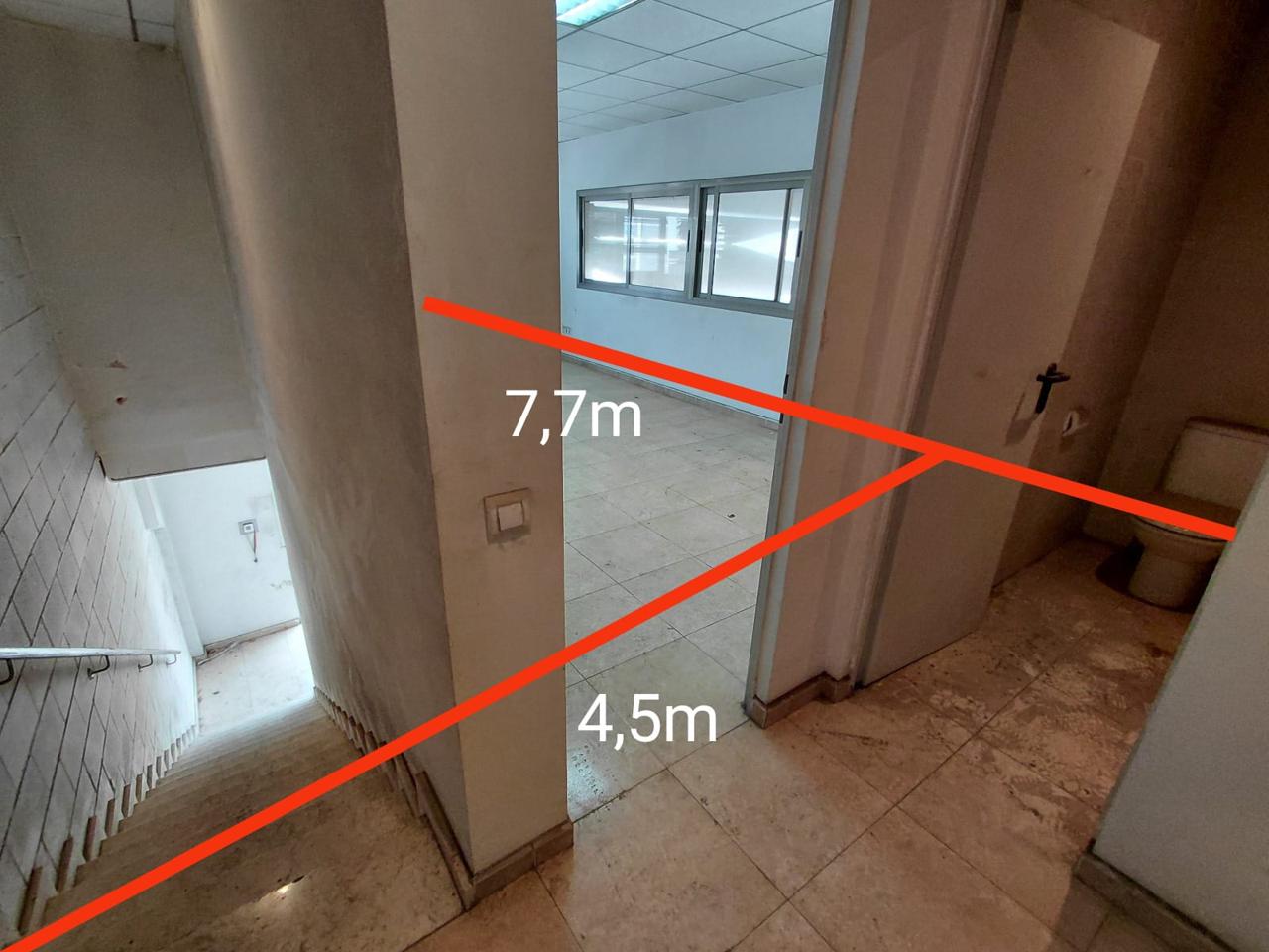 A la planta baixa hi ha un bany amb dutxa, una estada destinada a atenció al client i la resta de la nau diàfana.